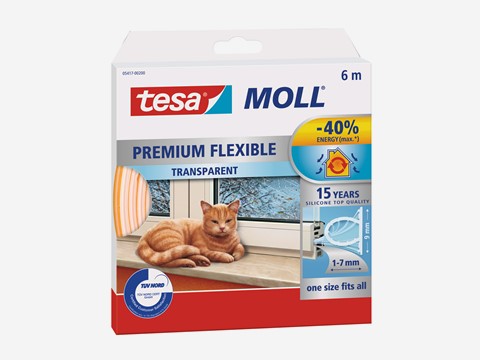 Die Mindestlebensdauer von tesamoll PREMIUM FLEXIBLE beträgt 15 Jahre. Die Ursache ist das extrem robuste Material, die Temperaturbeständigkeit und die innovative Klebetechnologie von tesa. Die selbstklebende Silikon-Dichtung schützt nicht vor unangenehmer Zugluft, sondern auch vor Lärm und Staub.